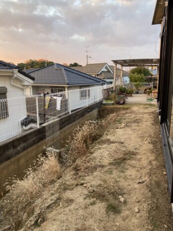 敷地は、駐車場と住宅の間に約1.8mの高低差があり道路からリビングが丸見えの状況でした。