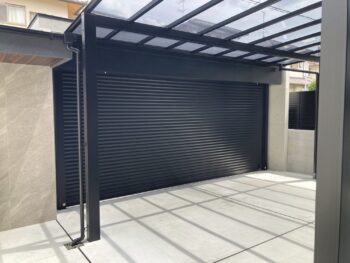 シャッターゲートとくぐり門を組み合わせた外構をお施主様と打ち合わせを重ね作らせて頂きました。
