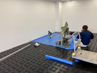 プラス1時間半で置き敷を引き終わったら、四隅のカットをせっせとやって!